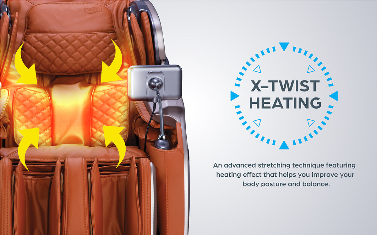 Airbag system that releases heat on the lower back and calves to help relax, soothe muscles and heal damaged tissue as it enables better blood circulation