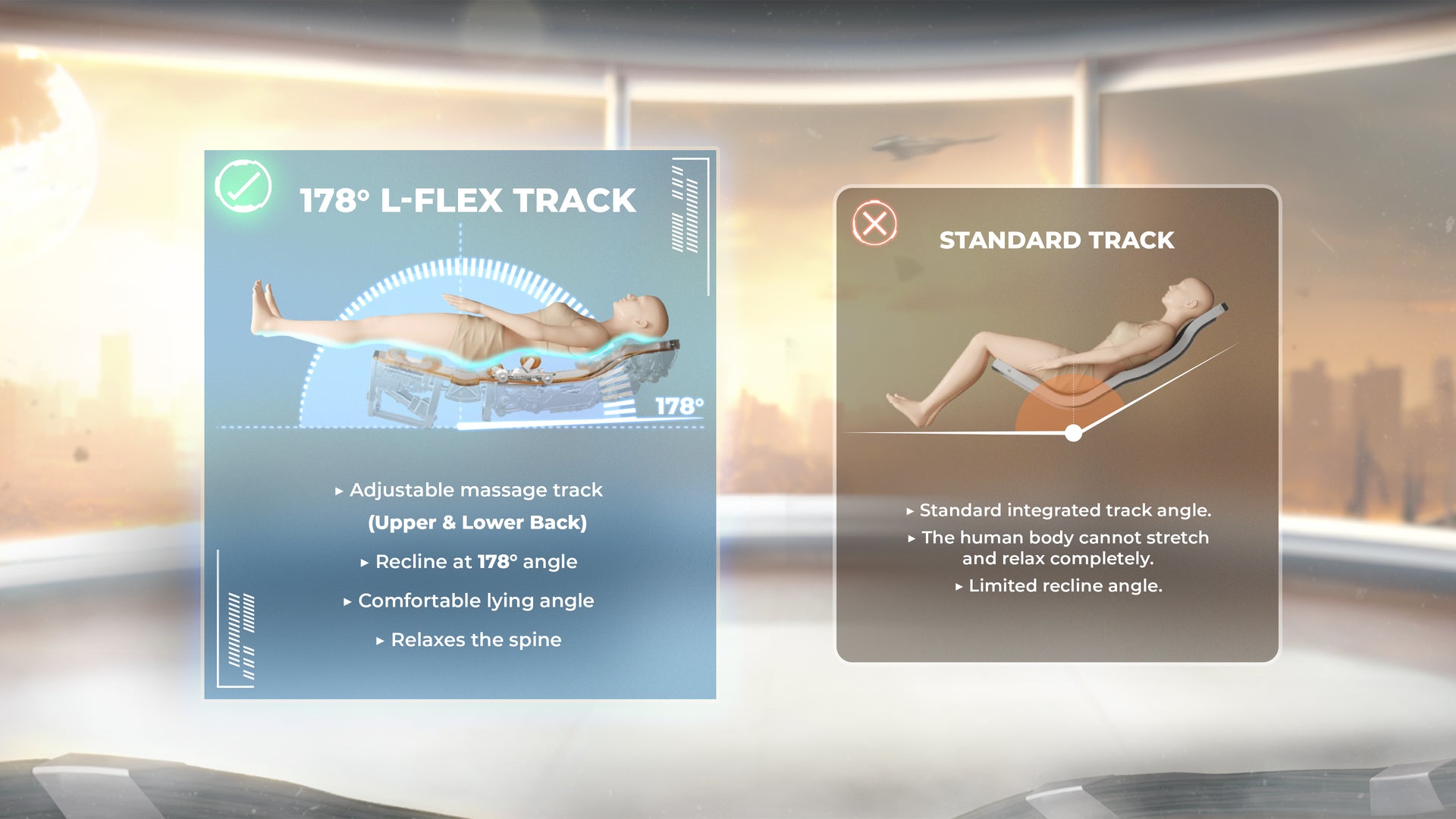 Reclines at 178° angle, allowing the massage rollers to target the right nerves especially on the lower back, hips, waist and buttocks.