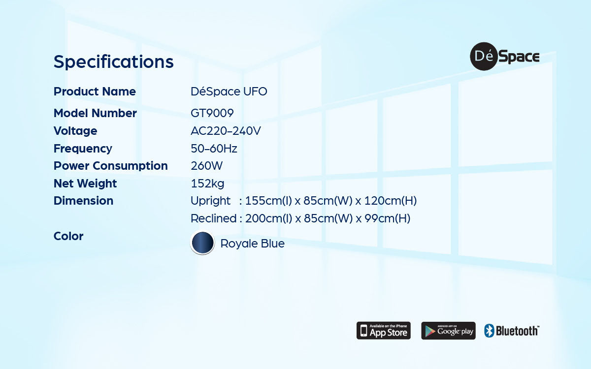 Model Name: GINTELL DéSpace UFO Royale Blue Massage Chair